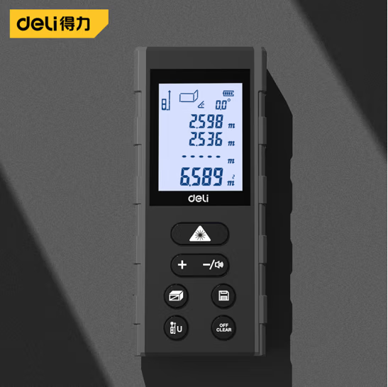 商品名称:得力(deli) 居家款黑白系列手持式大屏激光测距仪高精度电子尺红外量房仪电子水平泡120米 H8120B 商品编号:201209 品牌:得力 上架时间:2023-03-13 商品毛重:0克