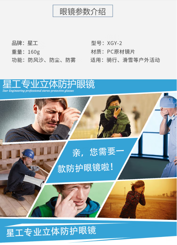 商品名称:星工(XINGGONG)护目镜 防冲击防雾 户外男女骑行防风防沙防尘透气XGY-2 商品编号:202698 品牌:星工 上架时间:2023-03-23 商品毛重:0克