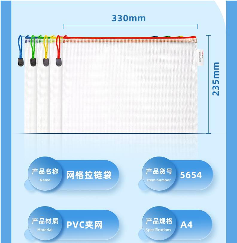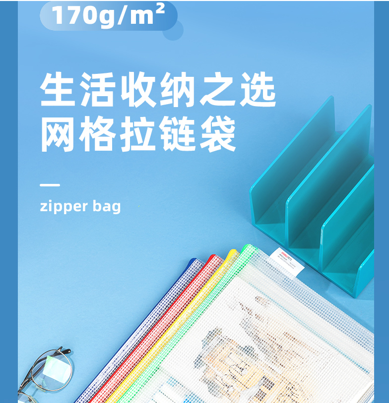 商品名称:得力5654网格拉链袋(混色)单只 商品编号:205034 品牌:得力 上架时间:2023-05-04 商品毛重:0克