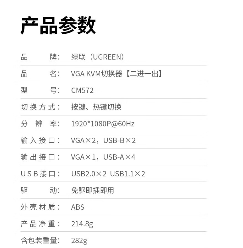 商品名称:绿联 CM572 KVM切换器 二进一出 VGA切换器 商品编号:205314 品牌:闪迪 上架时间:2023-05-12 商品毛重:0克