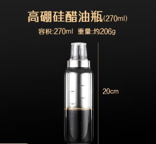 商品名称:尚烤佳 油瓶防尘防漏玻璃醋油壶酱醋调味瓶罐家用调料瓶香油瓶分装瓶 醋油瓶:270ml 商品编号:205694 品牌:尚烤佳 上架时间:2023-05-18 商品毛重:0克