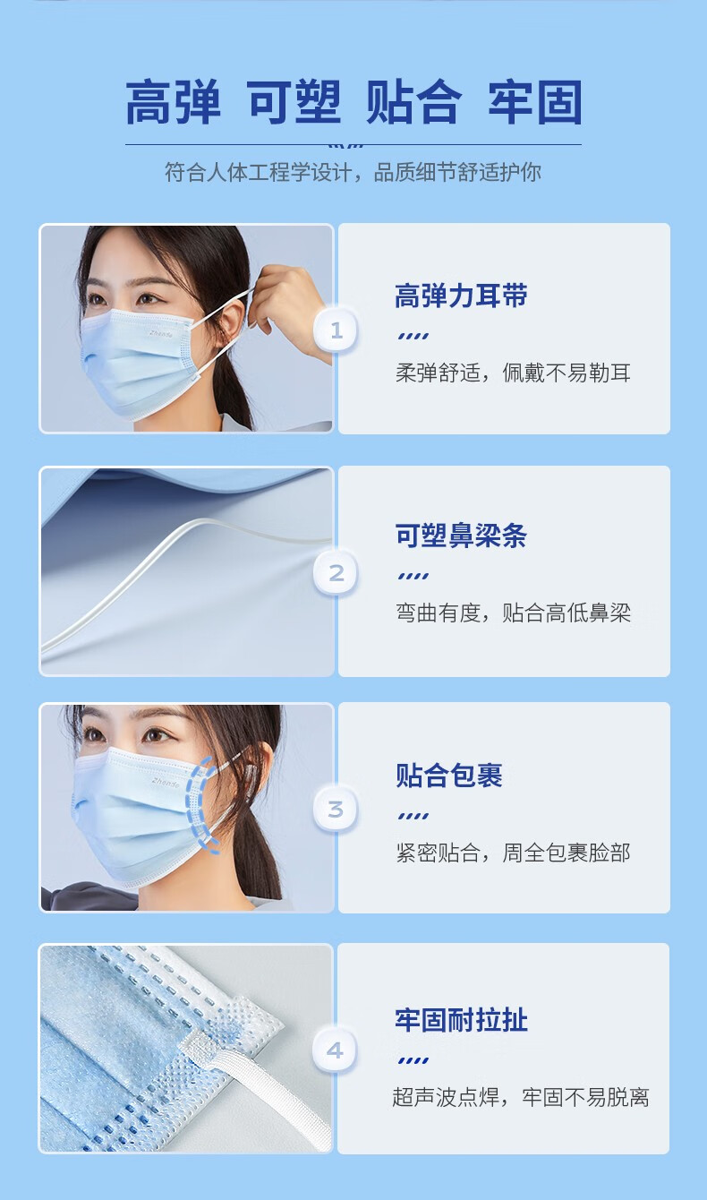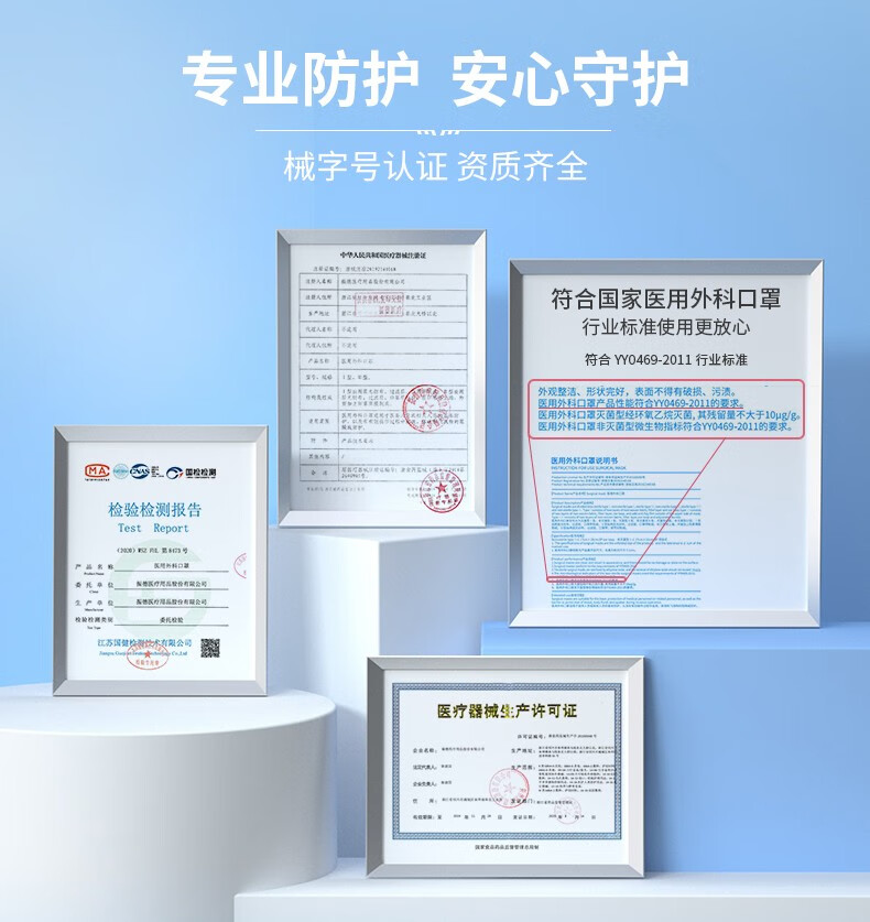 - 商品名称:振德(ZHENDE)医用外科口罩一次性三层防护口罩内含熔喷布独立包装口罩 低阻透气灭菌独立50只/盒