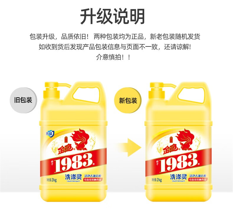商品名称:金鱼洗涤灵洗洁精 6桶 2kg 商品编号:206251 品牌:金鱼 上架时间:2023-06-20 商品毛重:0克