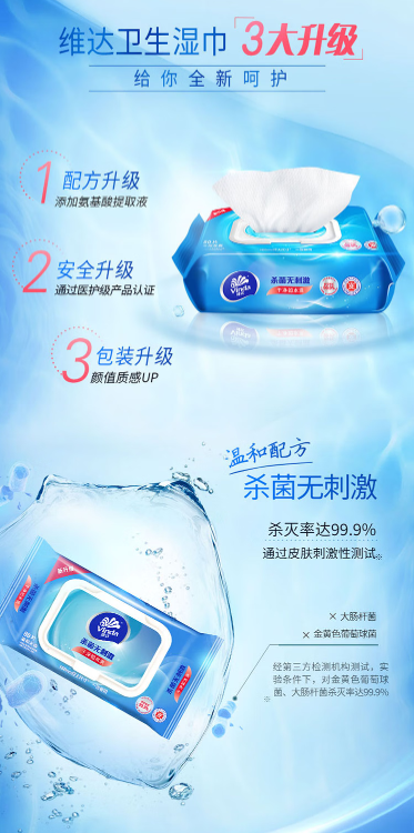 - 商品名称:维达(Vinda)湿巾湿纸巾杀菌湿巾纸80片 清洁无刺激卫生湿巾 细菌杀灭率99.9%