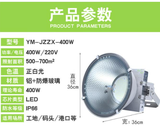 商品名称:LED塔吊灯建筑工地灯强光户外防水工程照明灯蓝球场足球场广场照明射灯 400W 超亮工程款 商品编号:206426 品牌:怡众 上架时间:2023-06-27 商品毛重:0克