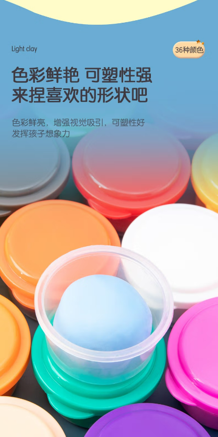 商品名称:得力(deli)超轻粘土套装儿童安全无毒男孩女孩diy手工制作模具彩泥物 36色盒装 商品编号:206540 品牌:得力 上架时间:2023-06-29 商品毛重:0克