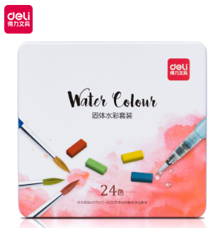 商品名称:得力(deli)24色固体水彩颜料 8件套(自来水笔画笔铅笔调色盘水彩纸橡皮)美术专用手绘水彩画专业级艺考73876 商品编号:207262 品牌:得力 上架时间:2023-07-07 商品毛重:0克