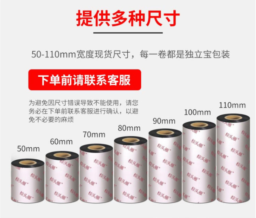 商品名称:棕头雁混合碳带(110mm*300m) 1卷 商品编号:207595 品牌:棕头雁 上架时间:2023-07-12 商品毛重:0克