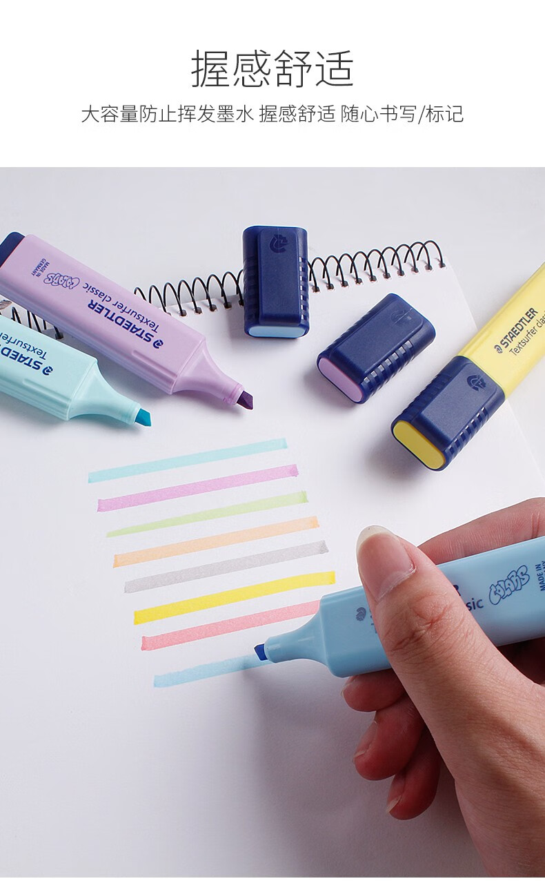 商品名称:施德楼(STAEDTLER)荧光笔经典彩色马卡龙学习重点标记笔 紫色364-6 商品编号:207938 品牌:施德楼 上架时间:2023-07-17 商品毛重:0克