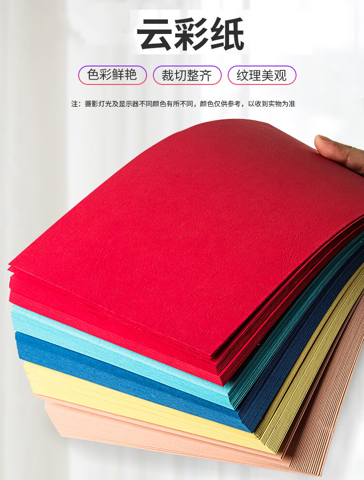 商品名称:得力 A4封面纸双面凹凸皮纹纸压纹纸云彩纸封皮纸卡纸标书封面硬厚手工卡纸 A4凹凸皮纹/包 大红色 商品编号:208005 品牌:得力 上架时间:2023-07-17 商品毛重:0克