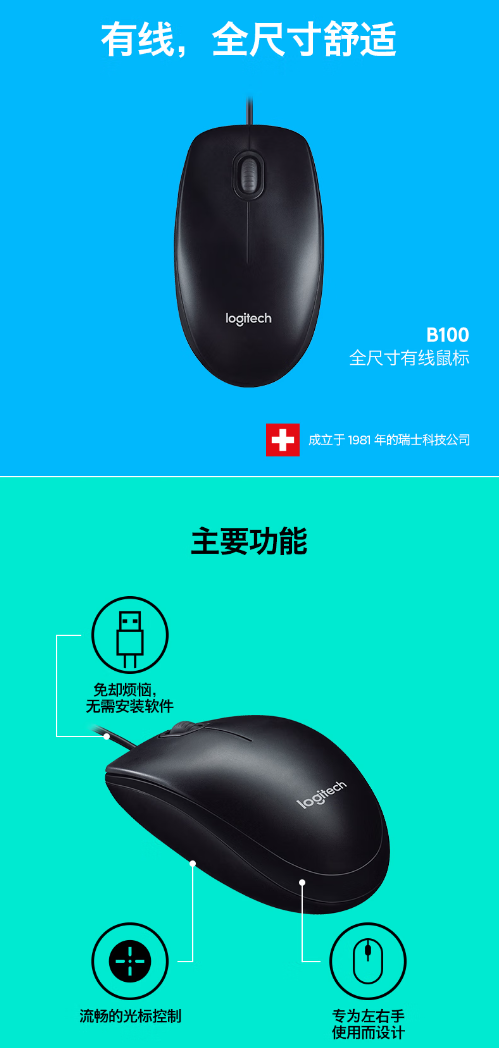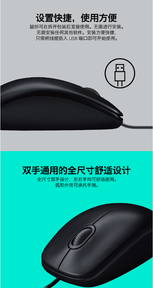 - 商品名称:罗技(Logitech) B100B220B330 有线/无线鼠标 usb光电鼠标 商务办公家用鼠标 B330