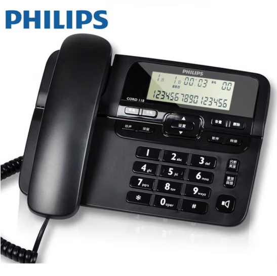 - 商品名称:飞利浦CORD118电话机 来电显示免提商务办公家用有线固定电话座机 CORD118双接口
