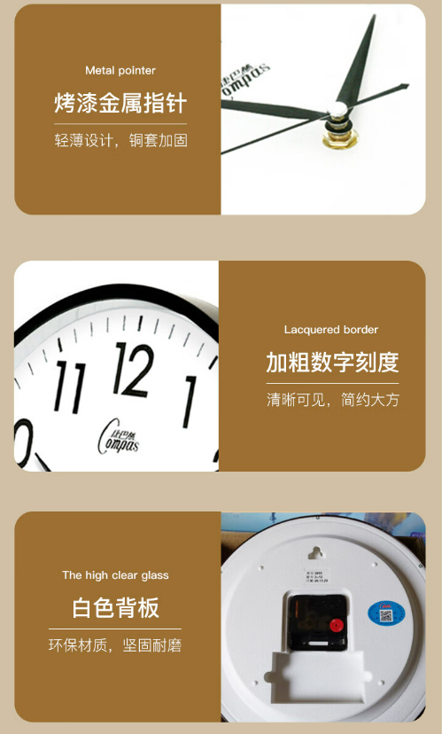 商品名称:康巴丝(COMPAS)挂钟 创意简约钟表客厅石英钟表挂墙时钟 白色 商品编号:209975 品牌:康巴丝 上架时间:2023-09-25 商品毛重:0克