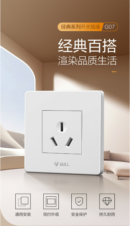 商品名称:公牛(BULL)三项开关插座 16A 商品编号:210250 品牌:公牛 上架时间:2023-10-11 商品毛重:0克