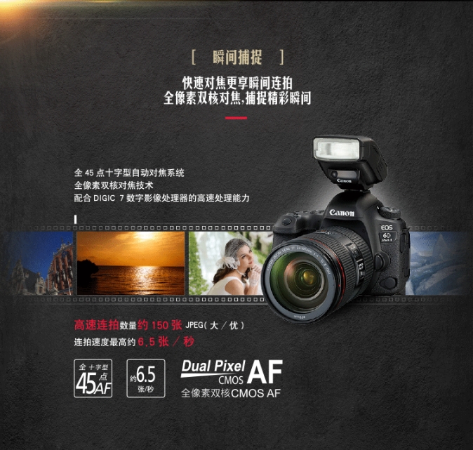 > 电池/充电器 (办公数码) > 摄影摄像 > 单反相机 > 佳能(Canon)EOS 6D Mark II 6D2全画幅 专业单反相机 L级24-105标准镜头套装(约2620万像素/4K延时视频短片)