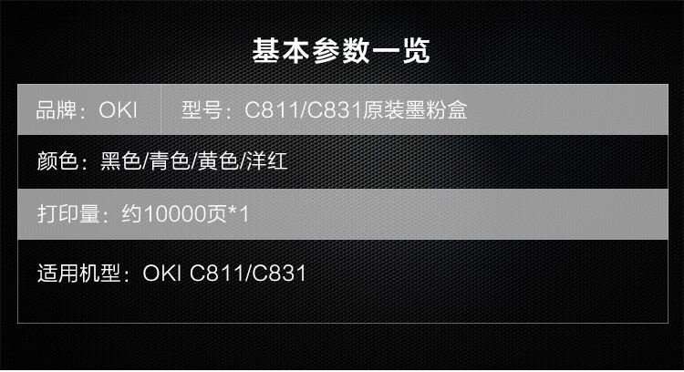 商品名称:OKI 墨粉粉盒粉仓 C811 C831DN 碳粉粉盒 黄色44844525 原装 商品编号:211284 品牌:OKI 上架时间:2023-11-08 商品毛重:0克