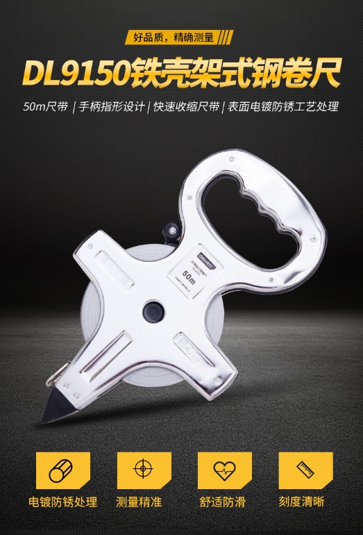 商品名称:得力(deli)金属外壳架式手提插尺钢卷尺工程测量尺子50m*12.5mm DL9150 商品编号:212085 品牌:得力 上架时间:2023-11-28 商品毛重:0克