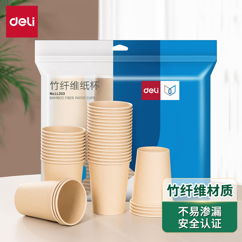 得力(deli)228ml竹纤维一次性加厚杯子 办公商务家用 水杯/纸杯 100只装 LL203