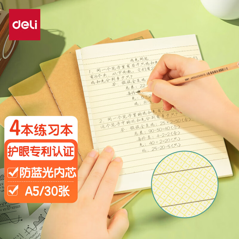 商品名称:得力(deli)护眼4本装A5/30张软抄本笔记本 PFA530 商品编号:214270 品牌:得力 上架时间:2024-03-11 商品毛重:0克