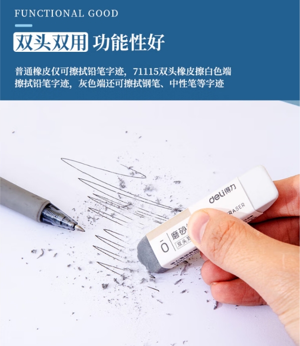 商品名称:得力71124A小恶魔4B橡皮(1块装) 商品编号:216657 品牌:得力 上架时间:2024-05-28 商品毛重:0克