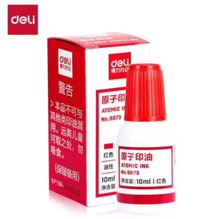 商品名称:得力 9873原子印油(红)(1瓶) 商品编号:216674 品牌:得力 上架时间:2024-05-28 商品毛重:0克