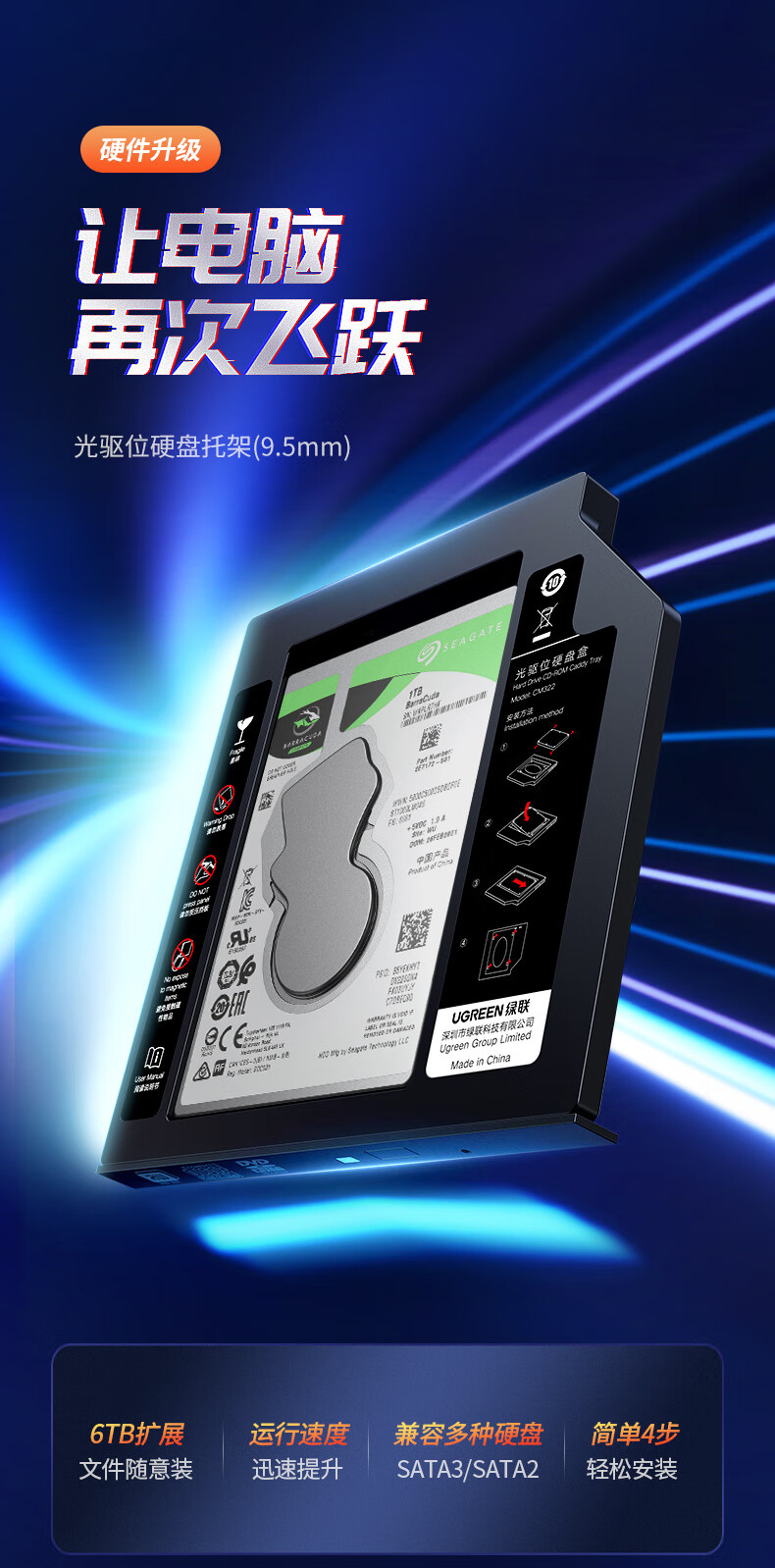 商品名称:绿联(UGREEN) 9.5mm笔记本光驱位SATA硬盘托架 2.5英寸SSD固态硬盘支架 9.5mm厚度70657 商品编号:217137 品牌:绿联 上架时间:2024-06-20 商品毛重:0克