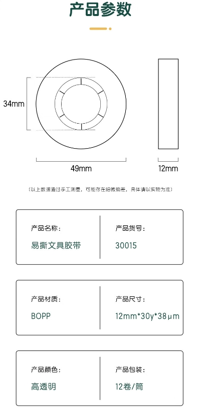 - 商品名称:得力(deli)易撕透明胶带 12mm*30y高粘小胶带 30015 12卷/筒