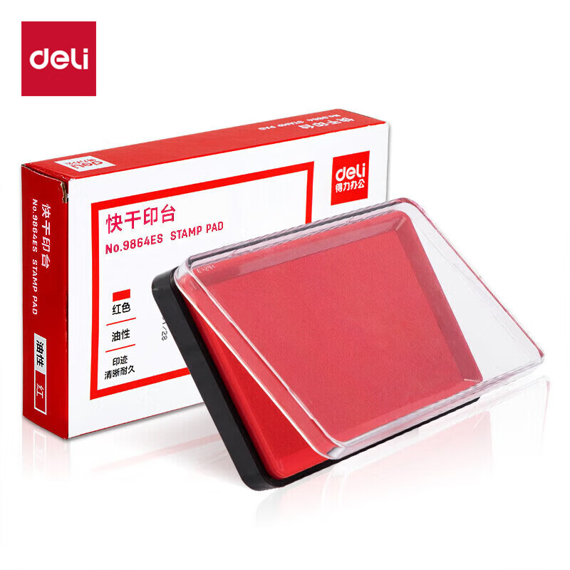 - 商品名称:得力(deli)138*86mm方形快干印台印泥 清晰印记 财务用品 办公用品 红色9864ES