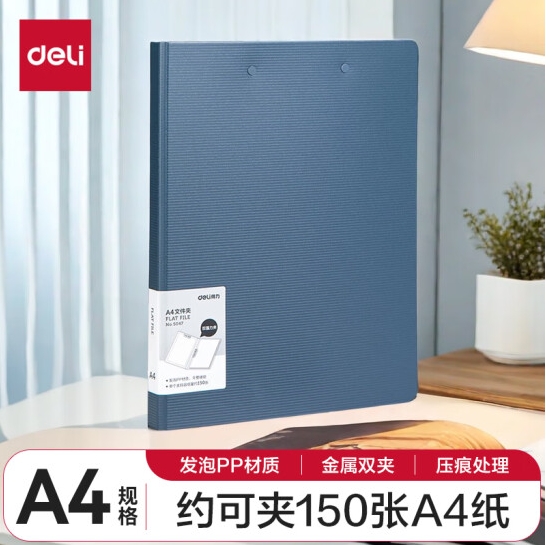 商品名称:得力(deli)高档悦彩系列A4双强力夹硬文件夹 5047蓝色 商品编号:217765 品牌:得力 上架时间:2024-07-15 商品毛重:0克