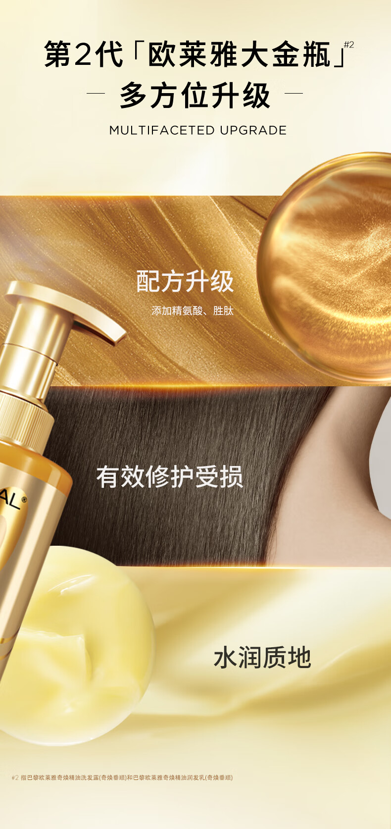 商品名称:欧莱雅大金瓶洗发水护发柔顺顺滑改善干枯留香无硅洗护套装440ml*2 商品编号:217884 品牌:欧莱雅 上架时间:2024-07-22 商品毛重:0克