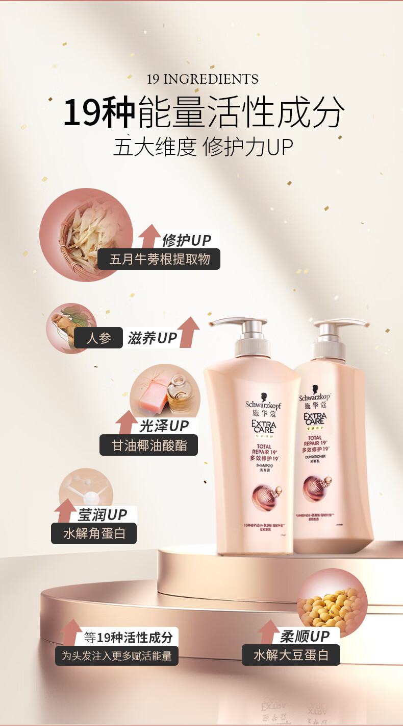 商品名称:施华蔻(Schwarzkopf)新多效修护洗发水 损伤修护弱酸洗发露护发素 防毛躁柔顺男女通用 【超值养护装】洗600ml+润600ml 商品编号:217886 品牌:施华蔻 上架时间:2024-07-22 商品毛重:0克
