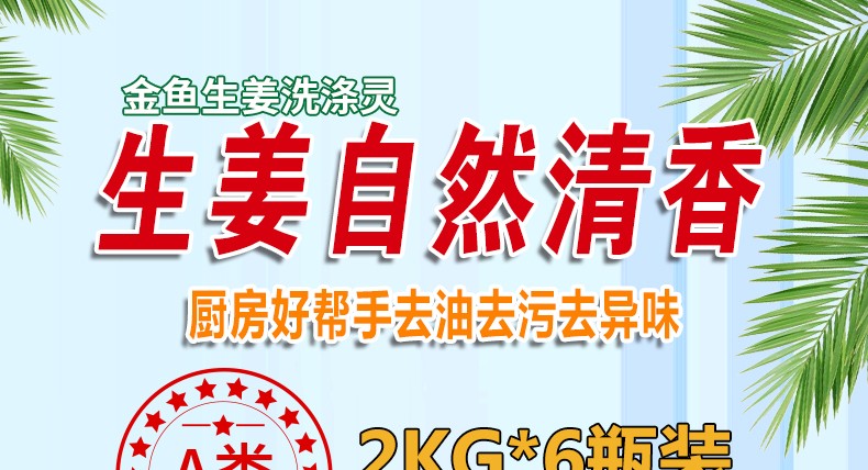 商品名称:金鱼洗洁精洗涤灵中性蔬果清洗剂洗碗液去油污洗洁精整箱装 生姜洗涤灵2kg*6桶/箱 商品编号:218012 品牌:金鱼 上架时间:2024-07-29 商品毛重:0克