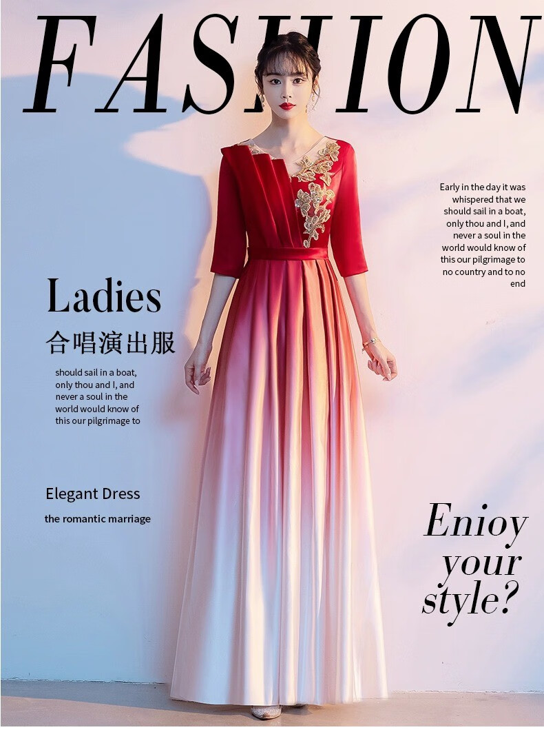 商品名称:大合唱服演出服女长裙+软底粗跟方头鞋 商品编号:218605 品牌:创新 上架时间:2024-08-30 商品毛重:0克