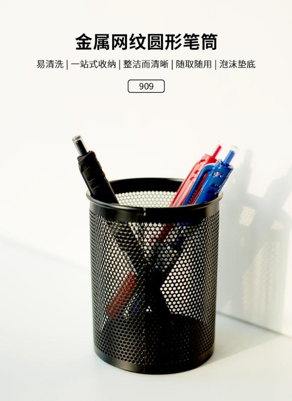 商品名称:得力(deli)909 网纹圆形笔筒 黑色 商品编号:219517 品牌:得力 上架时间:2024-09-29 商品毛重:0克