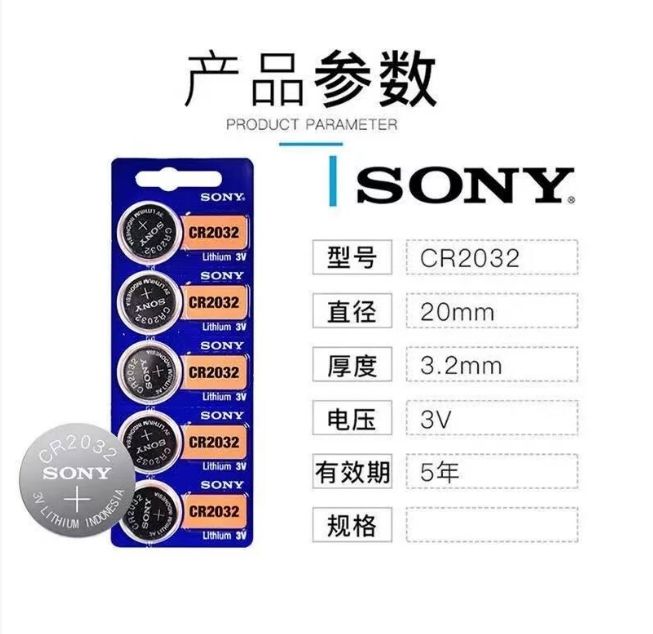 商品名称:索尼 CR2032 纽扣电池 商品编号:219519 品牌:索尼 上架时间:2024-09-29 商品毛重:0克