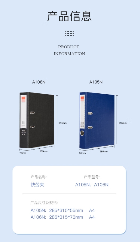 商品名称:齐心 A106N 超省钱欧式快劳夹 A4 3寸 黑 商品编号:219931 品牌:齐心 上架时间:2024-10-17 商品毛重:0克