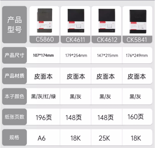 商品名称:齐心 CK4612 简约系列皮面本(宽行距)25K 74张 黑 商品编号:220414 品牌:齐心 上架时间:2024-10-21 商品毛重:0克