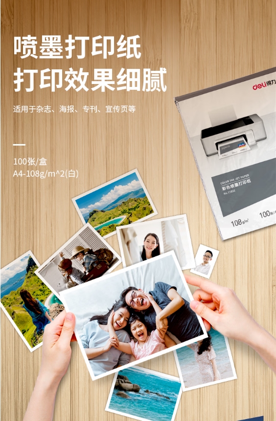 商品名称:得力(deli)彩色喷墨纸100张/袋 11832 商品编号:222534 品牌:得力 上架时间:2024-12-05 商品毛重:0克