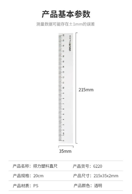 商品名称:得力(deli)透明20cm学生直尺 商品编号:223198 品牌:金得利 上架时间:2024-12-19 商品毛重:0克
