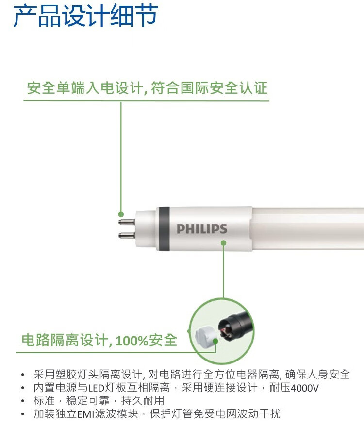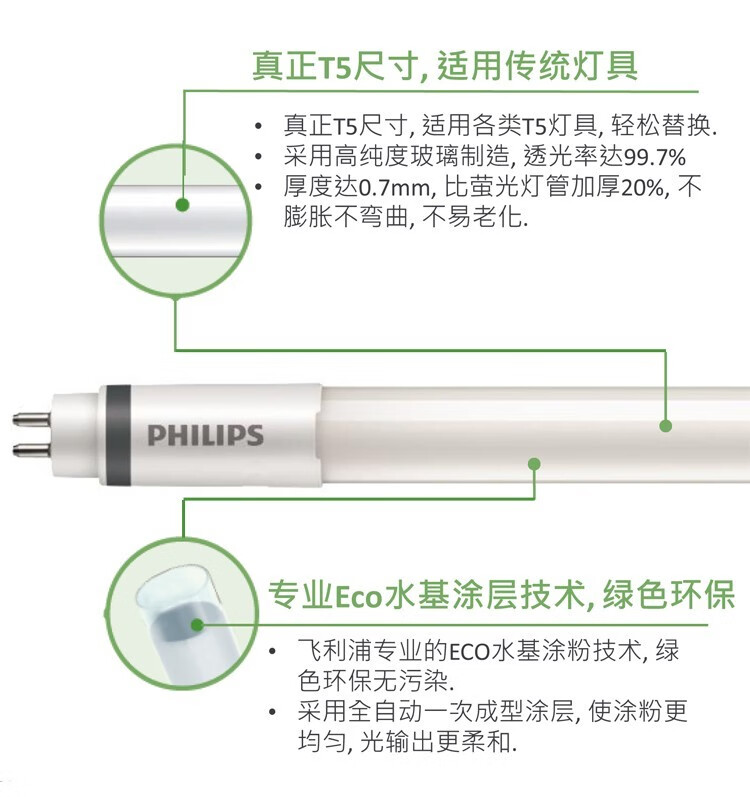 - 商品名称:飞利浦(PHILIPS) 日光灯长条灯家用光管直管整箱 T5LED灯管8W0.6m6500K-20根 白光6500K