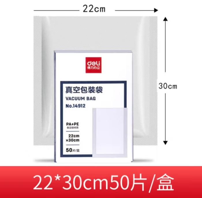 商品名称:得力(deli)真空包装袋 22*30CM(50片/盒)