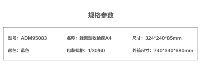 商品名称:晨光(M\x26G) 文件篮 蜂窝型收纳筐 A4不带盖-ADM95083 1个 商品编号:225276 品牌:晨光 上架时间:2025-04-18 商品毛重:0克