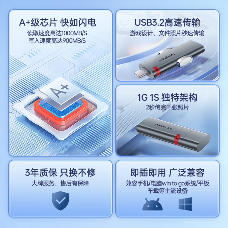 商品名称:ThinkPlus联想 256GB 固态U盘1000MB/s双接口USB3.2&Type-C高速传输大容量手机电脑通用优盘TSU305系列 商品编号:226972 品牌:联想 上架时间:2025-06-27 商品毛重:0克