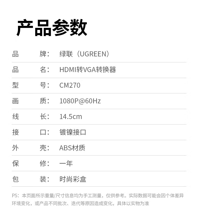 商品名称:绿联HDMI转VGA转换器高清视频转接头适用电脑台式机笔记本小米电视盒子PS5连显示器投影仪连接线60738 商品编号:227134 品牌:绿联 上架时间:2025-07-07 商品毛重:0克