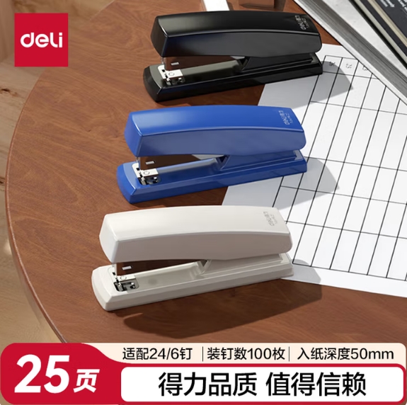 商品名称:得力(deli)12号耐用型订书机 白色0425