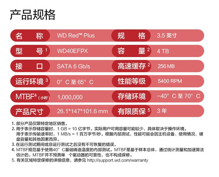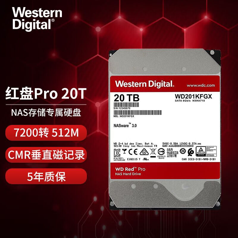商品名称:西部数据(WD) 红盘 nas网络存储服务器台式机械硬盘 SATA接口 3.5英寸 20TB -PRO WD201KFGX 商品编号:227876 品牌:西部数据 上架时间:2025-08-20 商品毛重:0克
