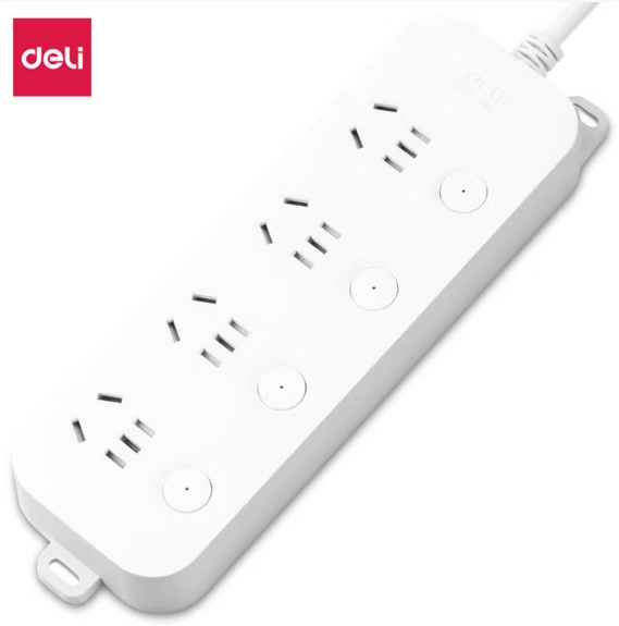 得力33914(1.8)雅白系 列延长线插座 4组 1.8 米