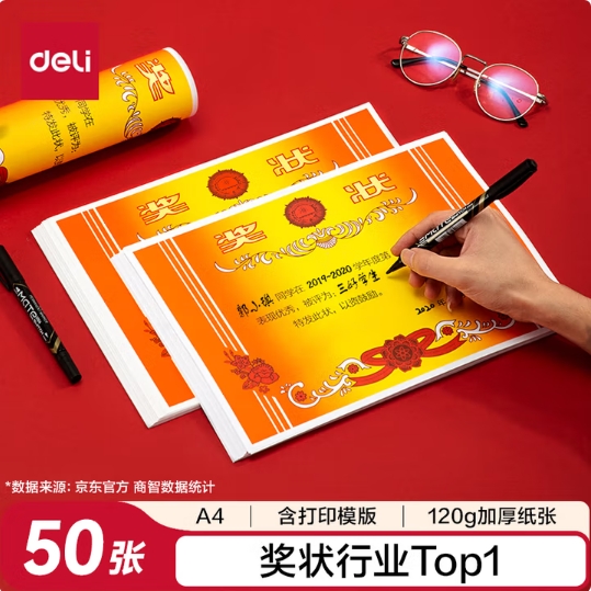 商品名称:得力(deli)A4奖状纸获奖证书 50张/(包)24828 商品编号:228578 品牌:得力 上架时间:2025-09-16 商品毛重:0克