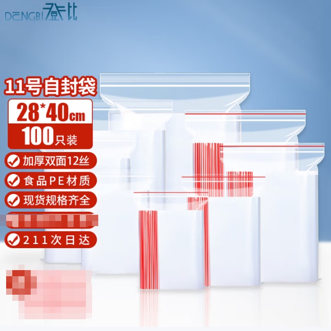 商品名称:登比 自封袋11号加厚透明食品袋28*24cm 100只/包 商品编号:229081 品牌:登比 上架时间:2025-09-22 商品毛重:0克