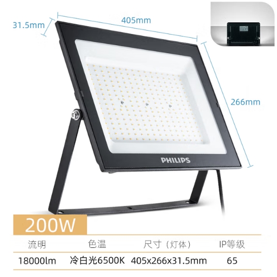 商品名称:飞利浦LED室外投光灯户外灯照明家用超亮投光灯仓库工地强光防水路灯 200W白光6500K